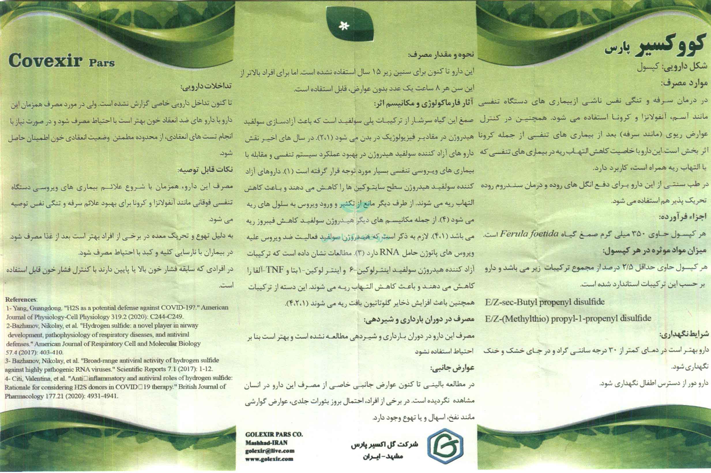 ⚠️ مهم: هیچ فرآورده گیاهی، تضمین «درمان قطعی» بیماریهای جدی مثل کرونا یا فیبروز ریه نیست. کووکسیر پارس تنها بهعنوان کمکدرمان و زیر نظر پزشک باید مصرف شود.